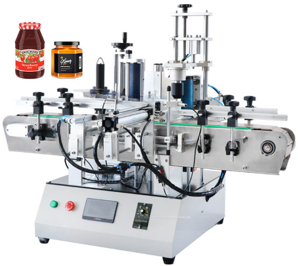 Бутылку нужно подтолкнуть и повернуть, чтобы наклеить этикетку. Этот способ маркировки подходит для обычных бутылок, в том числе круглых, квадратных и шестиугольных.